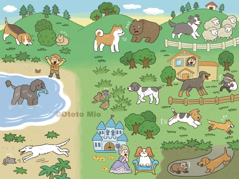 お仕事「【特集】愛犬の個性はどう作られる?」の「愛犬の個性と犬種」のイラストを担当いたしました!こういうちょっとマップっぽいものを描いたのは初めて!色々な種類のわんちゃんたちを楽しく描かせていただきました。
